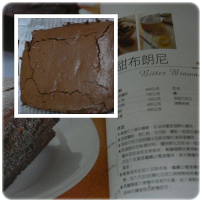 最近都在做蛋糕,嘗試布朗尼放在室溫下四天還是很濕潤,值得一吃的經典蛋糕。 參考的書是:做蛋糕偷吃步 材料 2000g方形模型一個低筋麵粉------400g 奶油--------------300g杏仁粉---------100g 鹽--------------------5g可可粉----------50g 巧克力豆--------250g糖粉-------------180g 烤熟核桃--------150g全蛋-------------500g 做法蛋打在碗中攪散;奶油放在室溫備用。低筋麵粉、杏仁粉、可可粉、糖粉一起過篩備用。200g的巧克力豆隔水加熱至融化保溫。將過篩的粉類、鹽和切成小丁的奶油放入攪拌缸裡,攪拌至奶油完全吸收。當麵糊質地較白及蓬鬆時,將蛋液分3~4次加入以慢速攪拌至蛋液完全吸收才能再次加入蛋液。蛋液完全吸收後,繼續以慢速攪拌至麵糊呈現濕潤細滑狀,加入融化巧克力、50g巧克力豆和烤熟搗碎的核桃攪拌均勻。將麵糊倒入烤模中至7分滿,放入預熱的烤箱180。C 烘烤約40分鐘後取出脫模。 *糖粉我有減少,我覺得太甜會不好吃。